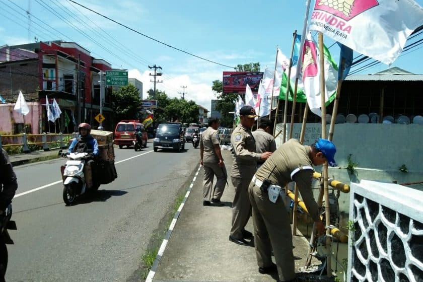 Plt. Kepala Satpol PP Kabupaten Purbalingga R. Imam Wahyudi mengatakan, “razia penertiban diadakan untuk penegakan Perda Nomor 9 Tahun 2016 tentang Ketertiban Umum dan Ketentraman Masyarakat di wilayah Kabupaten Purbalingga, salah satunya penertiban atribut parpol,” katanya kepada Radarmas. Dia menambahkan, selain bendera parpol yang dipasang tak sesuai aturan, razia penertiban juga menyasar reklame yang melanggar aturan. Yakni reklame yang tidak berizin atau masa izin berlaku telah habis, reklame yang melintang di jalan, dan pemasangan reklame pada tiang listrik atau telepon dan pohon “Tindakan yang diambil oleh anggota kami dengan menertibkan atau melepas reklame yang melanggar Perda,” ujarnya.